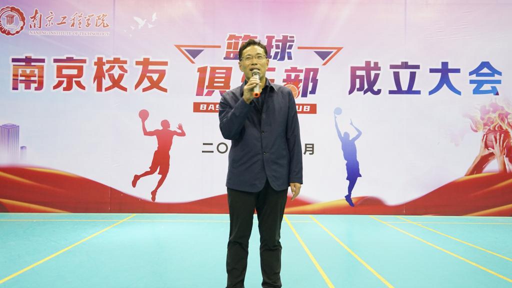 11月12日下午,我校南京校友篮球俱乐部成立仪式在天健苑·体育中心举行。校党委常委、副院长张仰飞出席仪式并致辞,校友会办公室、体育部负责人与南京校友联谊会代表们共同参与活动。