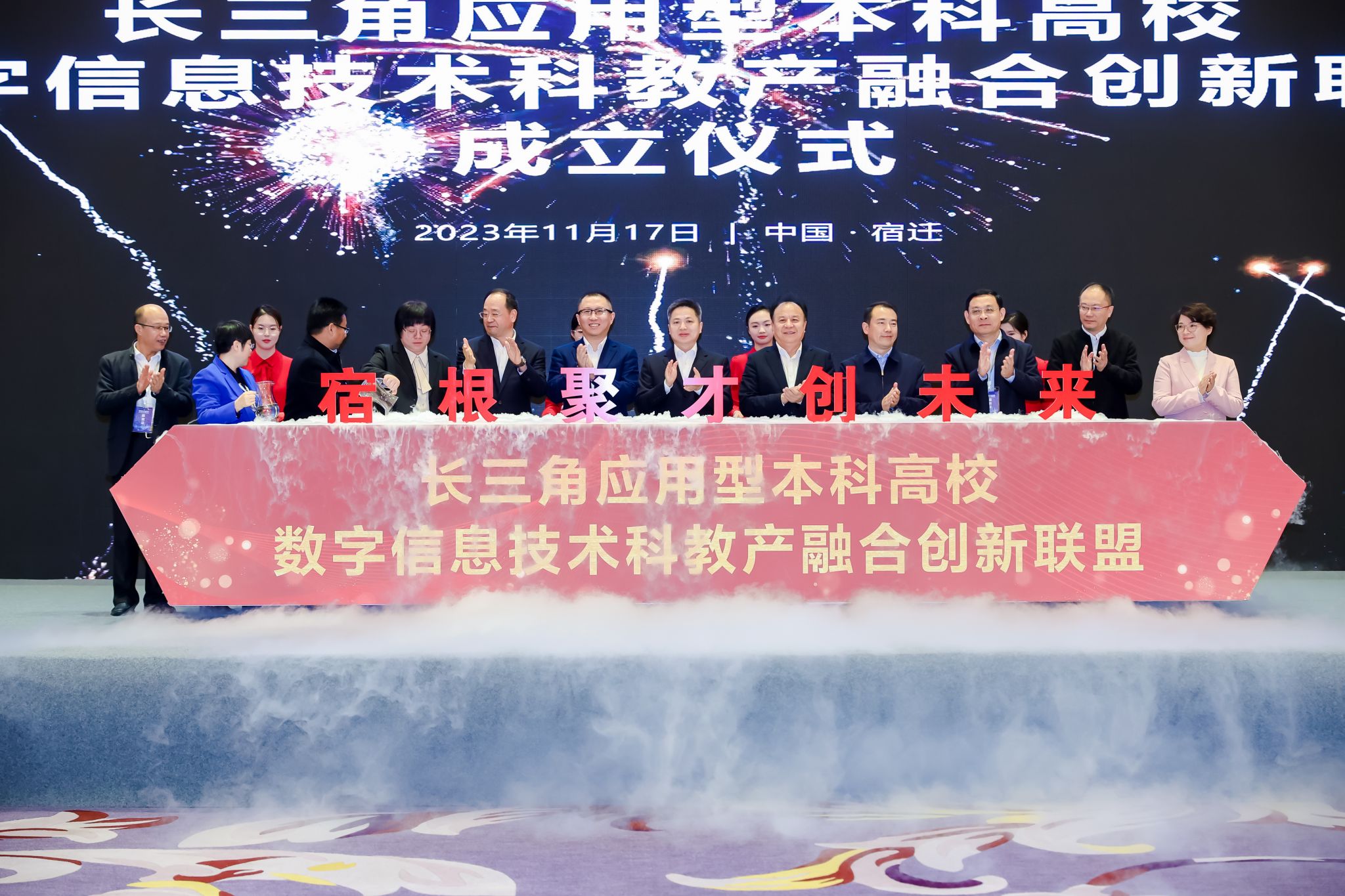 11月16-17日,由江苏省教育厅和宿迁市人民政府指导,华为技术有限公司和宿迁学院主办的“2023长三角应用型本科高校数字信息技术科教产融合发展论坛”在宿迁成功召开。我校党委书记孙爱武受邀出席并作主题报告。省教育厅二级巡视员周玖华、宿迁市人民政府副市长仲小兵、宿迁学院党委书记徐德等领导出席论坛并致辞,上海、安徽、江西等长三角区域的49所应用型本科高校领导和专家以及40多家涉数字技术创新企事业单位的技术专家参加论坛。