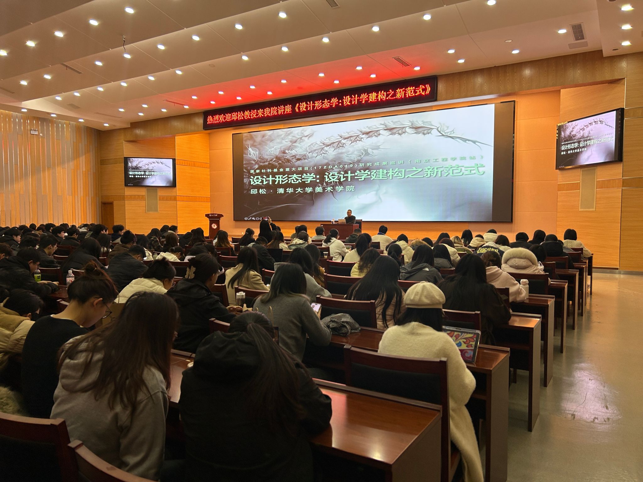 为进一步推动设计学科创新发展,深化师生对前沿设计理论的认知,3月11日,艺术与设计学院特邀清华大学美术学院教授、博士生导师、国家社科基金重大项目首席专家邱松教授,在影视报告厅举办题为《设计形态学:设计学建构之新范式》的学术讲座。此场讲座既是艺术与设计学院“学术月”系列活动的重磅环节,也是学院深化“新工科+艺术”交叉学科建设的重要举措,讲座由学院副院长侯建军主持。